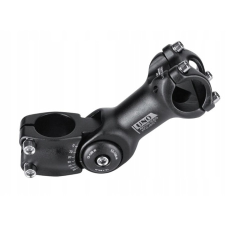 - Regulowany kąt pozwala na podniesienie kierownicy do góry i do siebie przez co możemy uzyskać lepszą pozycję na rowerze