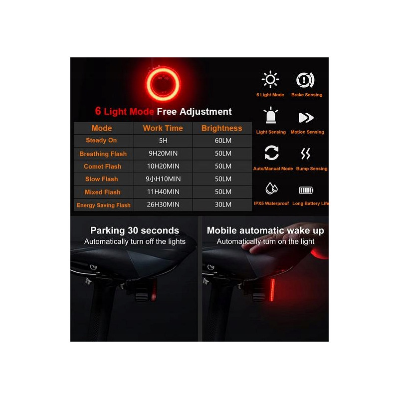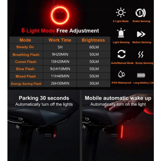 LAMPA ROWEROWA TYŁ BC-TL5579 ładowana z USB 60 lumenów 420 mAh