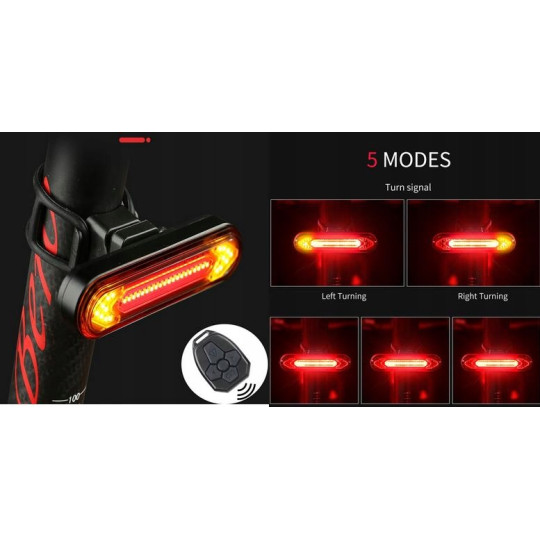 LAMPA ROWEROWA TYŁ BC-TL5521 KIERUNKI PILOT USB NOWOŚĆ