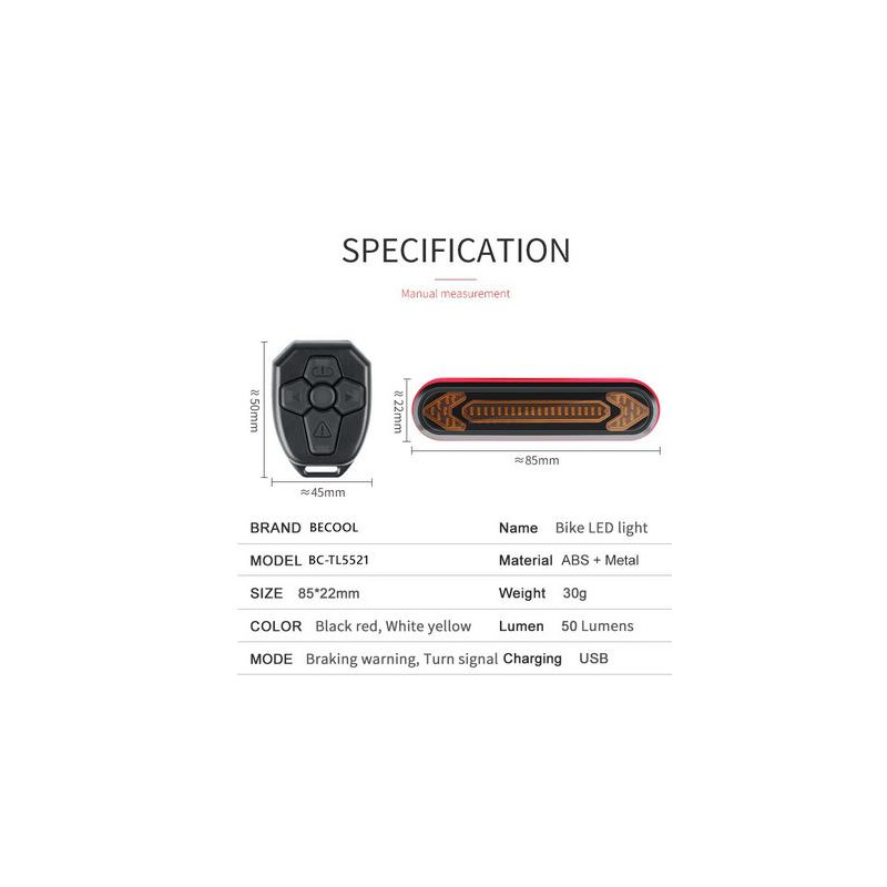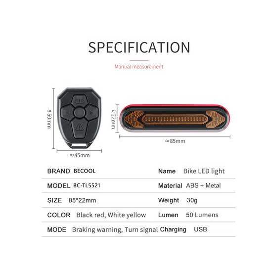 - Lampka rowerowa tył BC-TL5521 + pilot bezprzewodowy