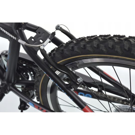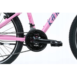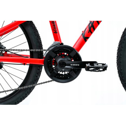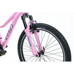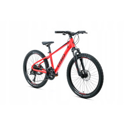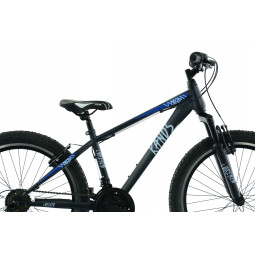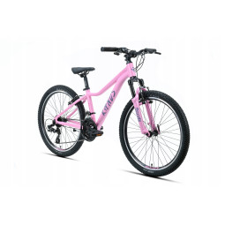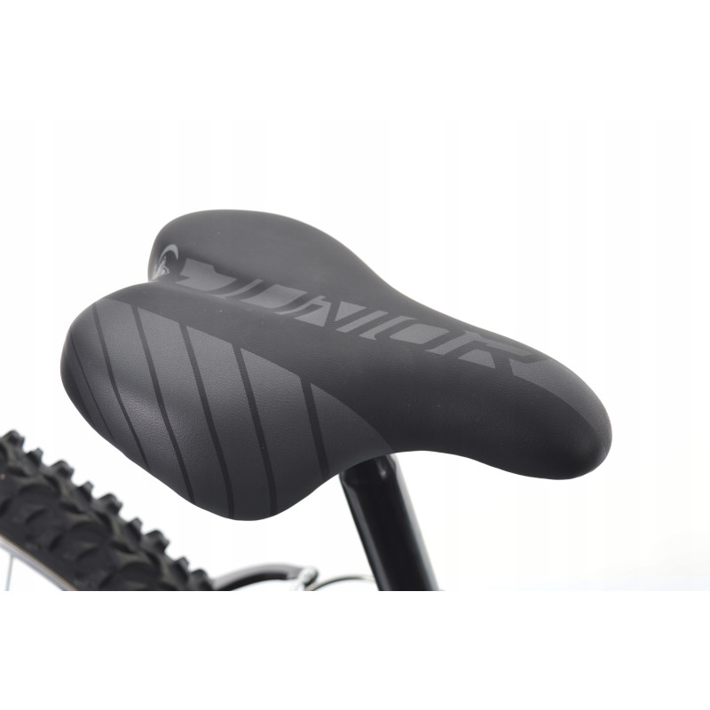 Rower należy do serii JUNIOR. Model na kołach 24” przeznaczony jest dla dzieci od wieku 7+. Jest to rower o charakterze górskim, który dzięki zastosowaniu markowych opon firmy DURO o bardzo agresywnym bieżniku pokona każdą przeszkodę.