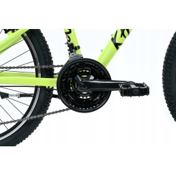 Najważniejsze zalety: lekka nowoczesna Aluminiowa rama, przerzutka marki SHIMANO TOURNEY, nowoczesne manetki SHIMANO REVOSHIFT SLRS36, niezawodny wolnobieg SHIMANO 6-RZ MFTZ500, wzmacniane dwukomorowe obręcze KANDS, markowe opony DURO 24X2,10, specjalnie wyprofilowana kierownica 620 MM, nowoczesne siodełko Monte Grappa typu Junior, przydatna podpórka