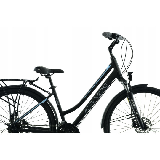 Rower trekkingowy KANDS, to wybór, który świetnie sprawdzi się w terenie miejskim, oraz pozwoli odkryć uroki turystyki rowerowej. Wyróżnia się pod względem praktyczności, dzięki zastosowaniu funkcjonalnych akcesoriów. Zastosowanie odpowiedniej geometrii ram, zapewnia wygodną, wyprostowaną pozycję. Lekkie aluminiowe komponenty, profesjonalne napędy, oraz odpowiednio dobrane opony zapewniają idealną przyczepność w terenie oraz na twardej nawierzchni. Wygodna pozycja pozwala czerpać przyjemność z jazdy, podczas krótkich przejażdżek, oraz długodystansowych wycieczek rowerowych z ciężkim bagażem.