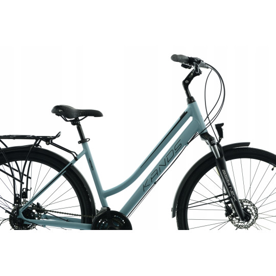 Rower trekkingowy KANDS, to wybór, który świetnie sprawdzi się w terenie miejskim, oraz pozwoli odkryć uroki turystyki rowerowej. Wyróżnia się pod względem praktyczności, dzięki zastosowaniu funkcjonalnych akcesoriów. Zastosowanie odpowiedniej geometrii ram, zapewnia wygodną, wyprostowaną pozycję. Lekkie aluminiowe komponenty, profesjonalne napędy, oraz odpowiednio dobrane opony zapewniają idealną przyczepność w terenie oraz na twardej nawierzchni. Wygodna pozycja pozwala czerpać przyjemność z jazdy, podczas krótkich przejażdżek, oraz długodystansowych wycieczek rowerowych z ciężkim bagażem.